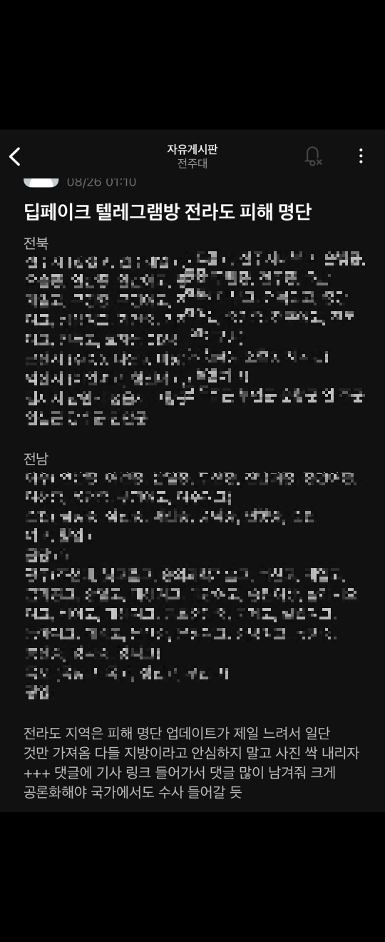 현재까지도 텔레그램 딥페이크 피해지역 리스트는