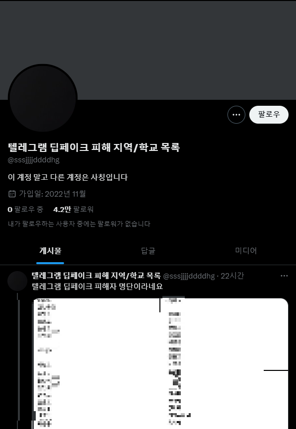 뭐 텔레그램 딥페이크 피해학교 목록을 정리하신 것을 보니